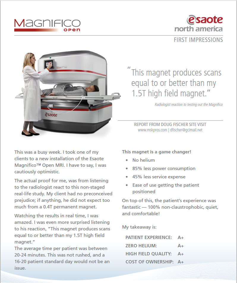 Magnifico has been developed in line with the Esaote MRI philosophy which means quality MRI at reduced costs: